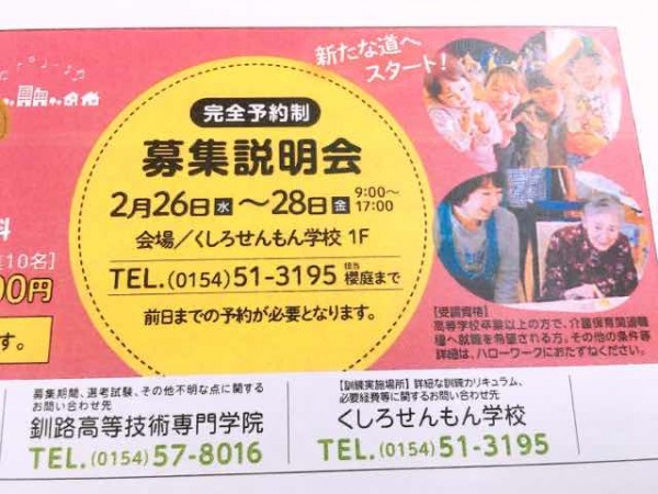 Tel 0154-51ー3195 くしろせんもん学校 担当 櫻庭(さくらば)