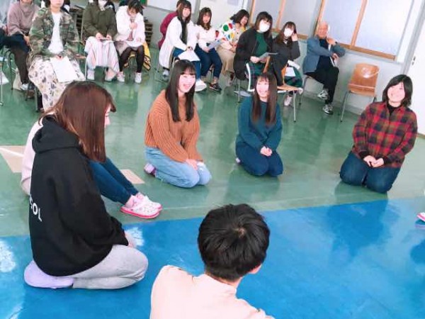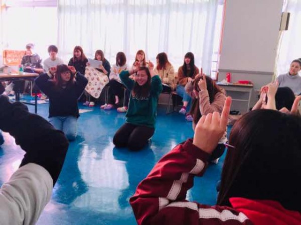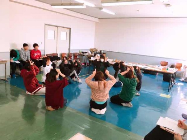 今日紹介するのは保育内容(幼児の表現)です。この授業は2年生の通年を通して30講行っています。講師は釧路市治水保育園の元副園長先生で、保育士会の研修講師を長年続けているわらべうた講師の横川牧子先生です。
