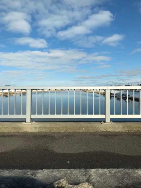 学校に一番近い橋、鶴見橋です。可愛い鶴が見守る橋です。先月のある日、鶴のつがいがゆっくりと優雅に川を渡って行きました。白鳥が訪れる日もあるのです。