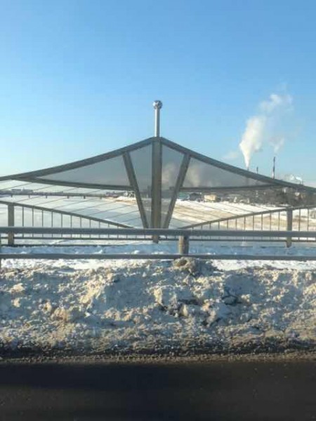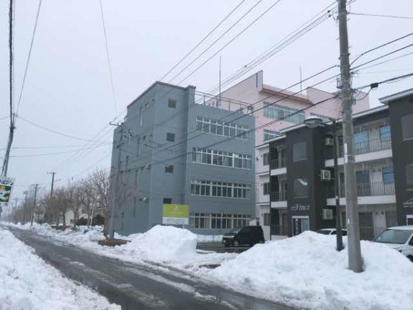 その鶴見橋から約500メートル程の場所にあるくしろせんもん学校。数年に一度の大雪で身長を超えるほどの雪山が。
