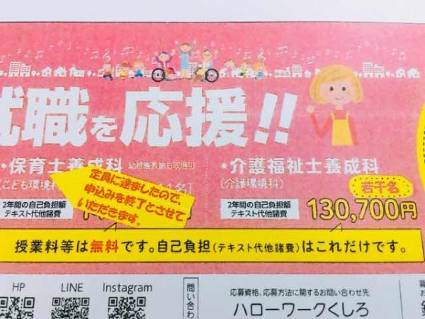 介護福祉士養成科の残り枠はわずかです。
