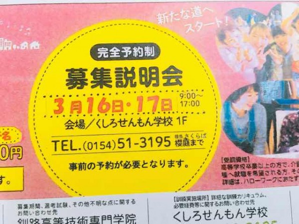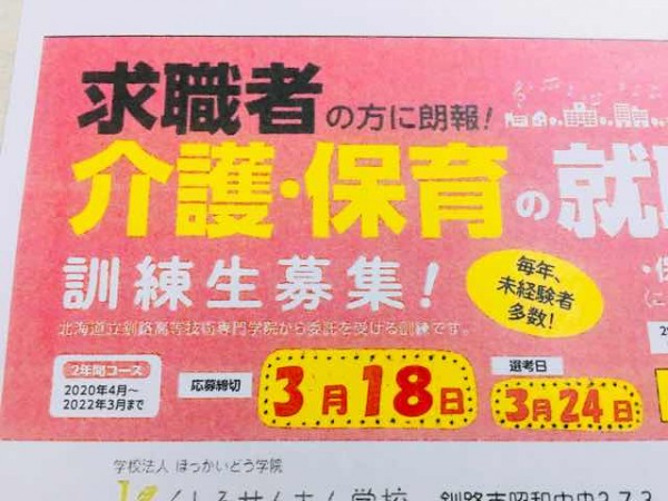 本日、北海道釧路高等技術専門学院から委託を受けた保育士養成科と介護福祉士養成科の一次試験が終了しました。保育士養成科は定員に達しましたので募集を終了しますが、介護福祉士養成科は2次募集を行います。