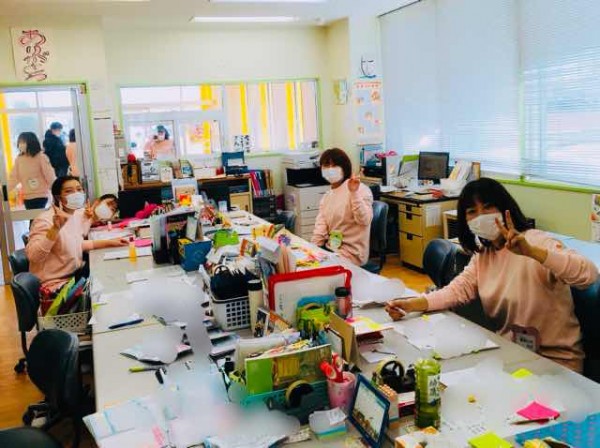 お隣りのわかばフレンドようちえんの職員室です。新学期の準備に大忙しの先生方でしたが、快く撮影に協力してくれました。いつもありがとうございます😊