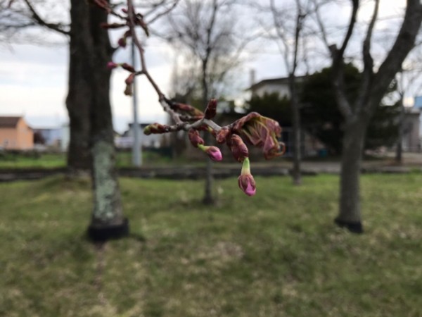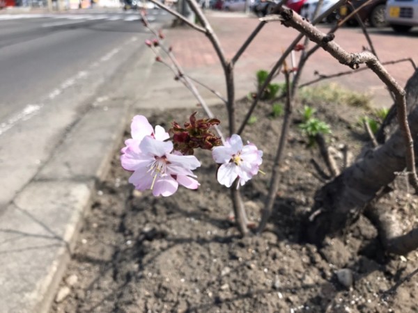 先週末、日本で1番桜の開花が遅いと言われるここ釧路で見つけた国道38号線沿いに咲く可憐な桜1号。
