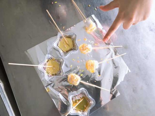 残ったアメをアルミカップに流し込みます。