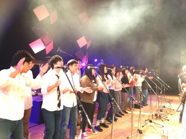 『とびら』収録時には、バックコーラスとして当時の学生も参加しました。
