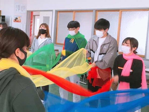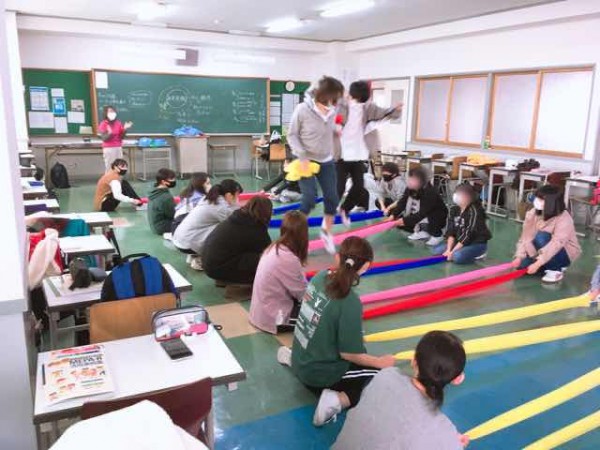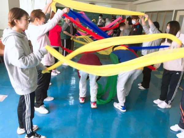 こども環境科では認定ムーブメント教育・療法初級指導者の資格が取得できます。(この資格を取得できるのは全国で3校のみです)1年生は、資格取得のための「特別の支援を必要とする幼児に対する理解」と「ムーブメント教育・療法」の単位取得のため、4日間の集中講義を行いました。