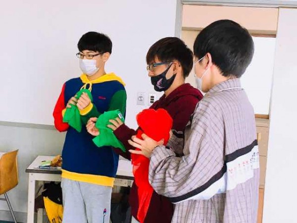 マスクの下の学生の表情は満開の笑顔(^-^)