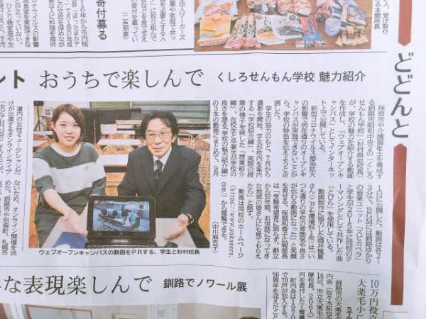 北海道新聞の夕刊に『おうちで楽しむイベントとして』本校のウェブオープンキャンパスの記事が掲載されました。