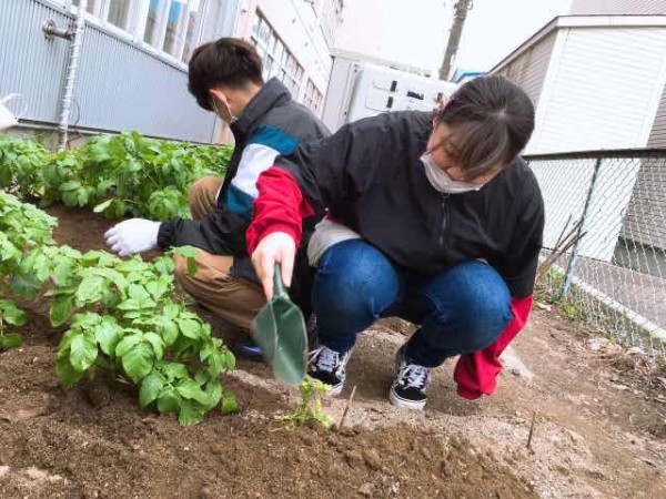 近藤先生の愛情を受け、学生とじゃがいもはすくすく成長していきました。丹精込め育て、収穫したじゃがいもでトン汁とポトフを作りました。