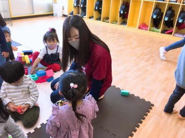 初めての現場見学に、最初は緊張ぎみの学生たちでしたが、クラスに分かれて自由遊びに参加する頃には、笑顔が見られました。