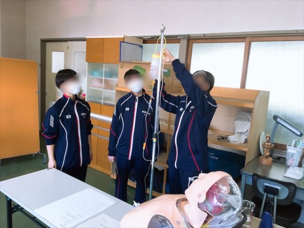 介護体験はビニール手袋を使用し、医療的ケアを体験しました。