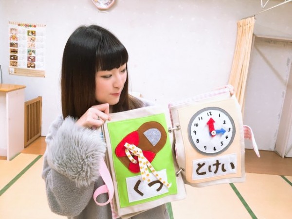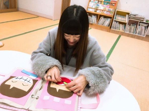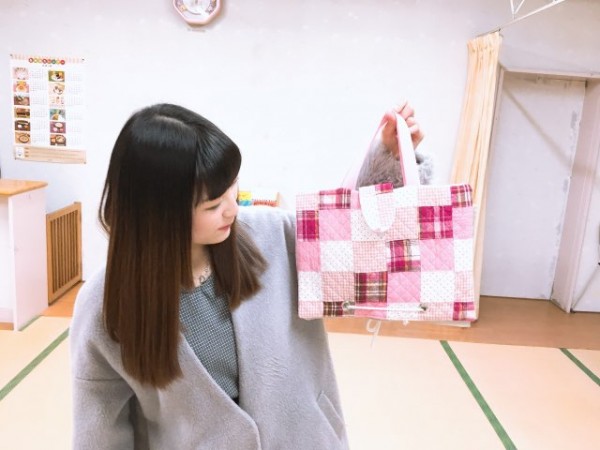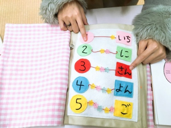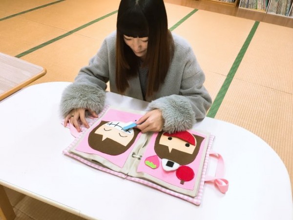 これはゼミ活動で作った『布の絵本バック』です。