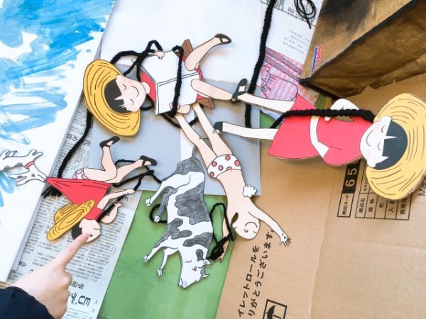 手法は巨大絵本と決まりました!早速 ダンボールとフェルトを活用して作成に取り掛かりました。
