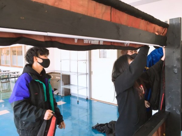 人形劇発表のための舞台作成に取り掛かりました。