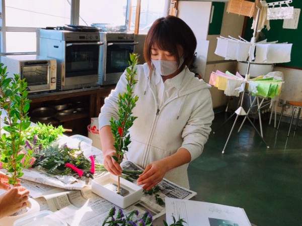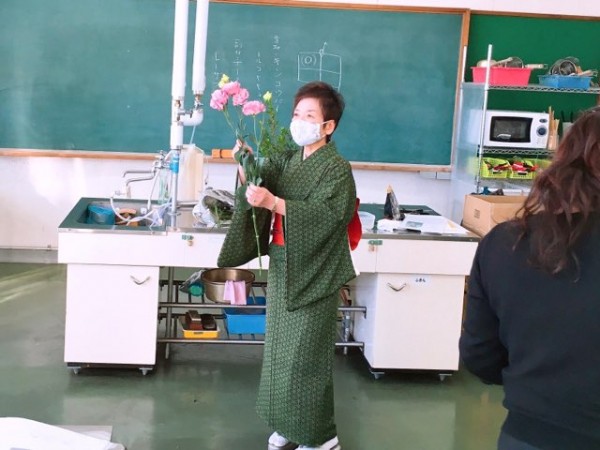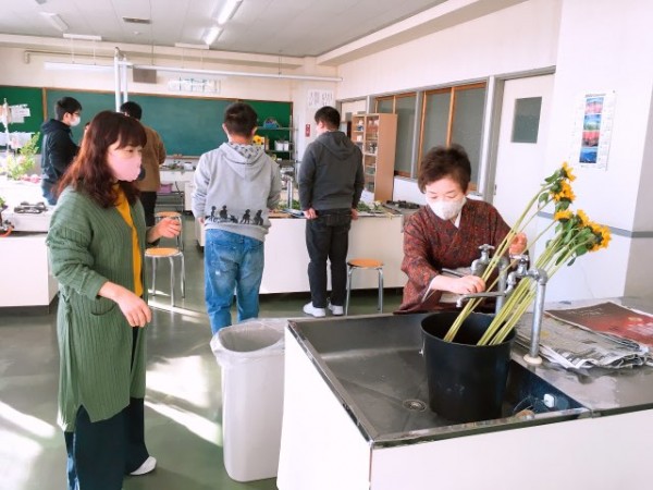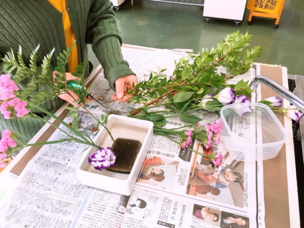 授業では、いけ方だけではなく、お花を長持ちさせる方法や、後始末の方法などの知識も教わります。