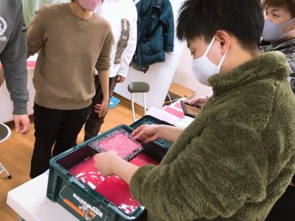 作業支援として行っている紙漉き体験を一緒に行いながら交流を図ることで、より利用者理解を深める貴重な機会となりました。