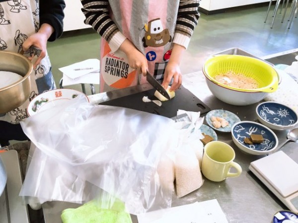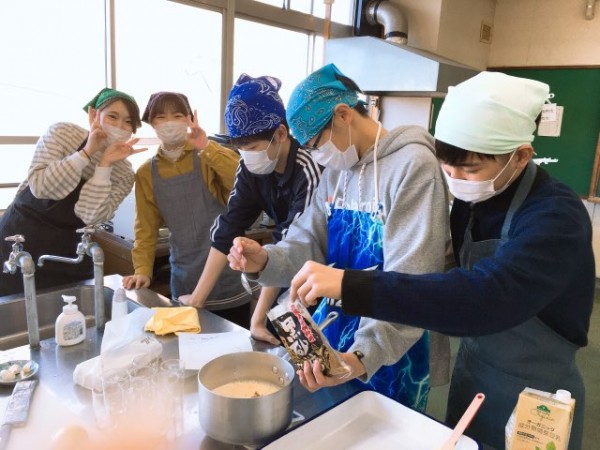 1年生はパッククッキングを用いた調理方法や、被災時に注意したい栄養不足についても学習しました。