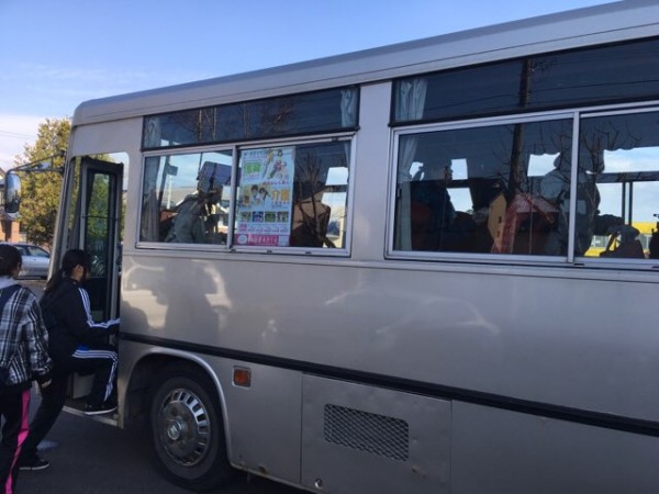 バスに乗ってみはらフレンドようちえんへ。「行ってきまーす!」