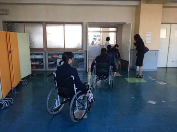 釧路北陽高校の1年生が来校。介護体験授業は車椅子体験でした。初体験の方も大勢いました。