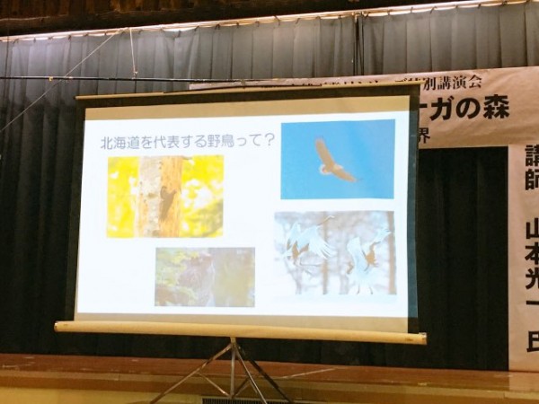 今回お招きした講師は、前田一歩園財団の自然普及課長の山本光一氏。釧路市内に生息する野鳥で、今話題沸騰中のシマエナガの生態について教えていただきました。