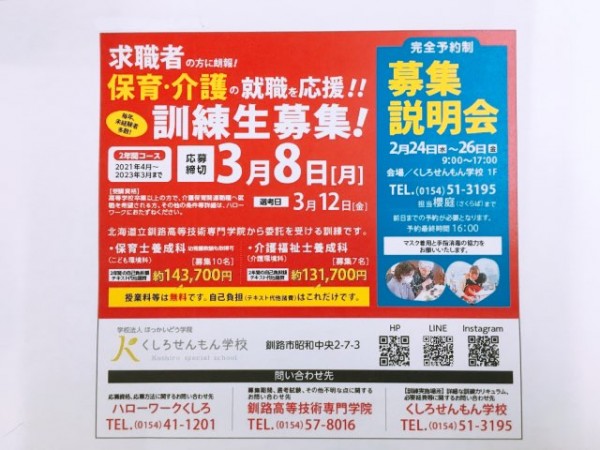 0154513195 くしろせんもん学校 担当 櫻庭(さくらば)