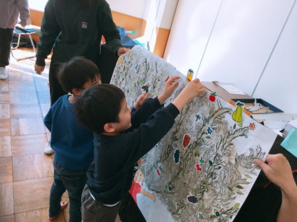 取り組んで来た影絵は、幼稚園の明るいリズム室では光の調節が難しいことが判明しました。急遽、劇として発表しました。この経験も大きな財産です。