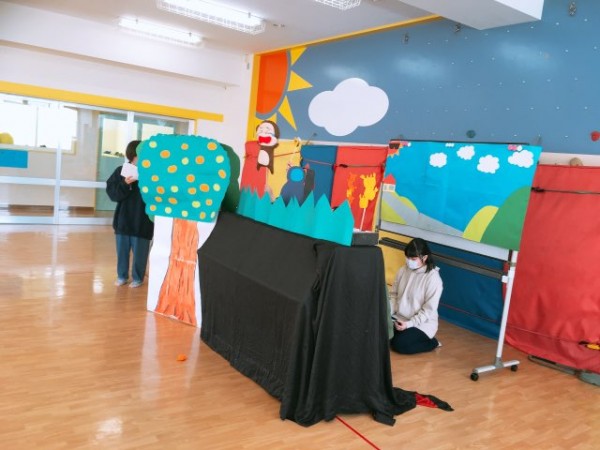 こども環境科では、学生の学びの集大成として地域のこどもたちを招いて『人形劇発表会』を開催しています。