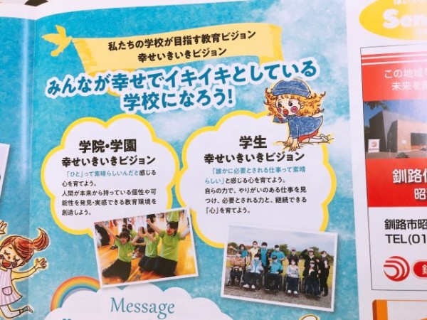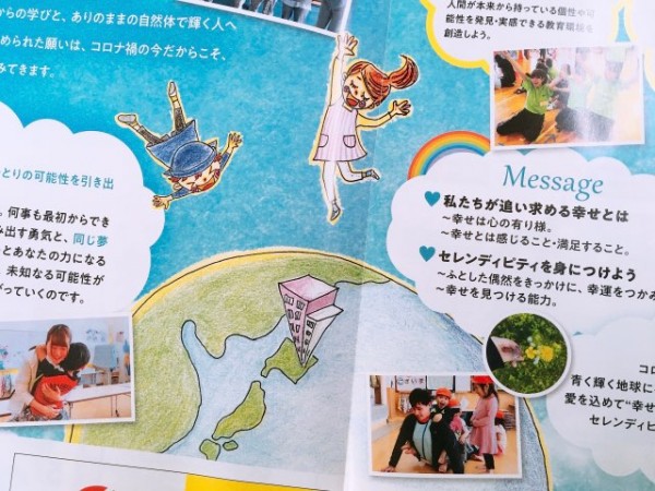 2・3pでは、教育理念の自然と人間を愛する教育(無条件の受容)の解説と、学校のビジョンの一部を紹介しています。