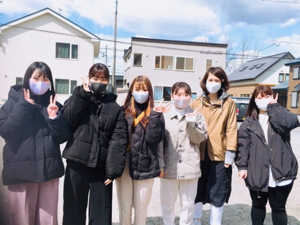 介護環境科新1年生の女子グループが、カメラに笑顔を向けてくれました!