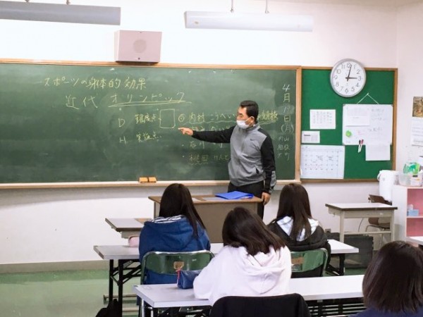 この日の体育講義は、近代オリンピックや古代オリンピックの歴史や開催の意図について教えていただきました。