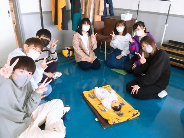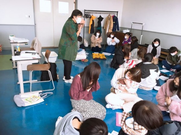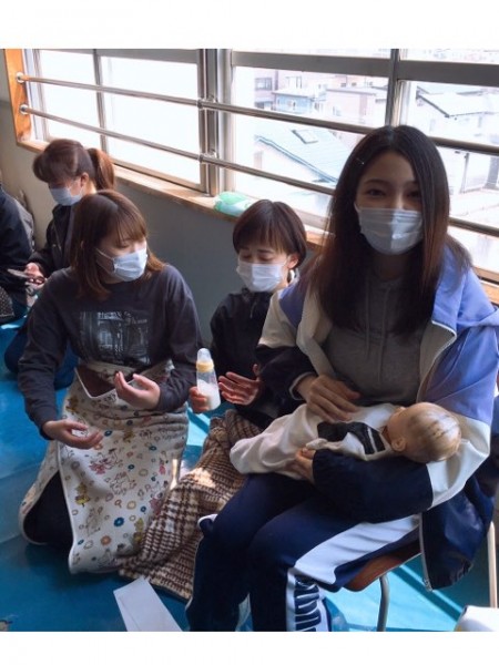 この日は乳児人形を活用して、抱き方や身体遊びを学習しました。ホンモノの赤ちゃんそっくりの乳児人形が登場すると、学生たちの目はキラキラに輝き出しました。