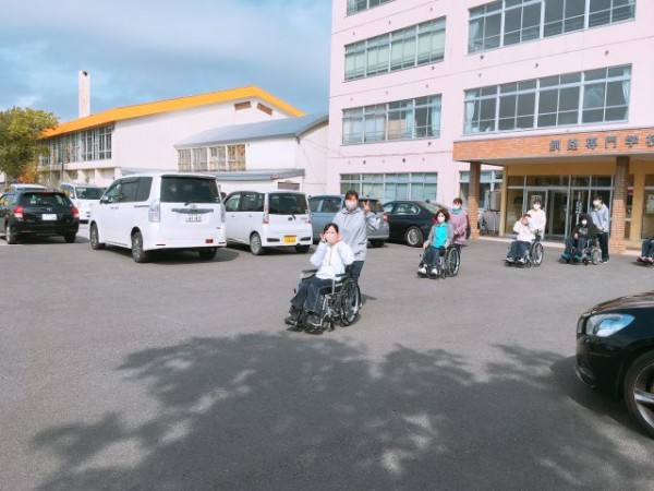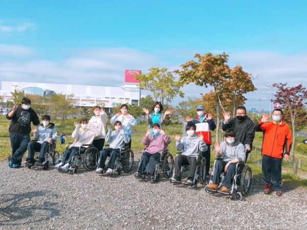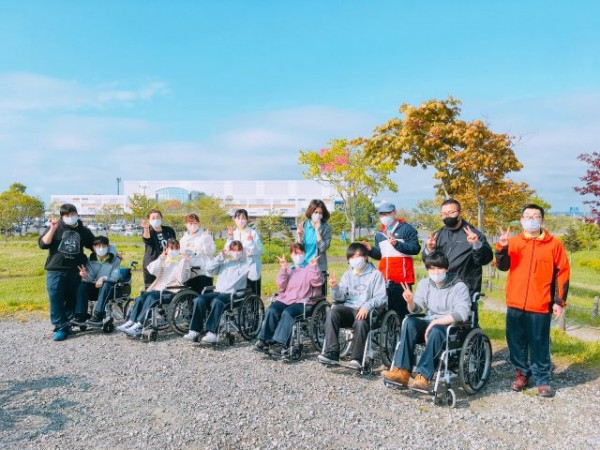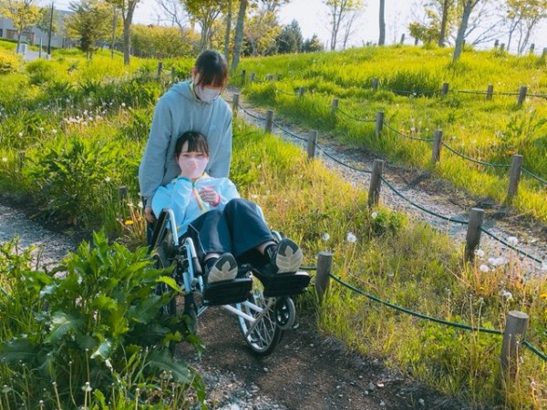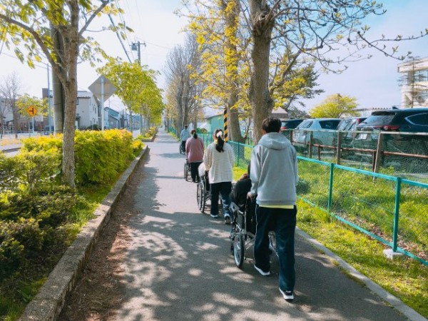 2人ペアとなり、利用者役と介護者役にわかれ、近隣の昭和中央公園まで往復しました。