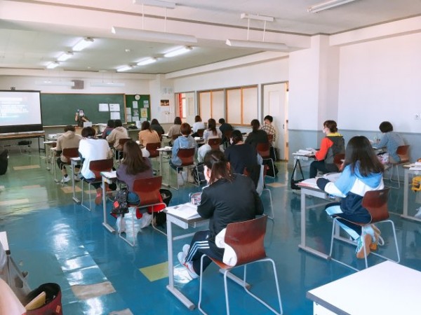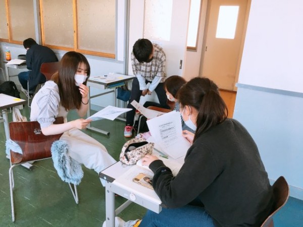 考えたことをグループ(コロナ禍のため、前後2人)で話し合いました。コロナ禍では、なかなかアクティブラーニングで学ぶ機会が少なくなり、残念です。