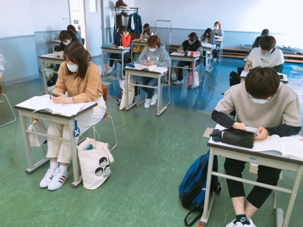緊急事態宣言発令以降は広い教室で間隔を空け、マイクを活用した受講スタイルとしています。