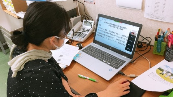 画面を透して応急処置方法を学んだり、動画視聴、ブレイクアウトルームで記述に基づいたグループ学習を行いました。