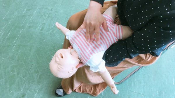 こどもの応急処置の方法を学ぶために、お人形も活用しました。