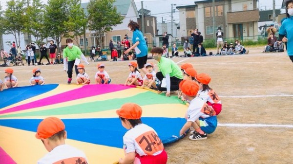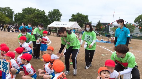 市内に3園ある系列フレンドようちえんの運動会に、こどもたちの見守りや競技の準備・応援者として参加しました。