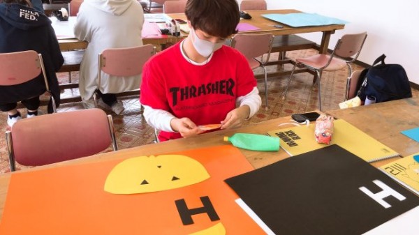 「焼きイモ 焼きイモ お腹がぐー。ホッカ ホッカ ホッカ ホッカ アチチのチー」思わず歌い出したくなる楽しい壁面装飾を作成している学生の皆さんは、イキイキと輝いていました☆☆