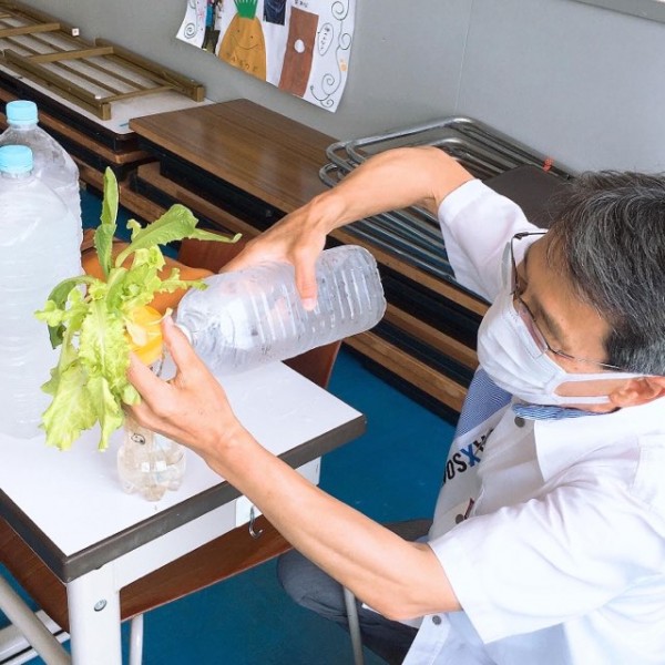 近藤先生は数日おきに来校し、水の減り具合を確認しながら肥料水を補充していました。