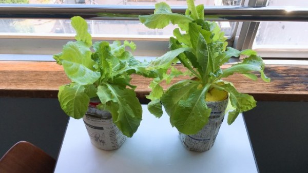 南窓に置いたレタスたち。君たち、しっかり育って!