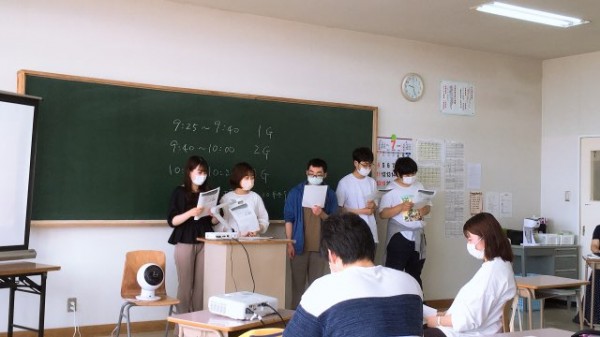 この日の授業では、3グループに分かれて、各自が学んだことを発表し合い、質疑応答・意見交換・講師のアドバイスを受け、より深い学びの次のステップへ向けて意欲を燃やす学生たちでした。