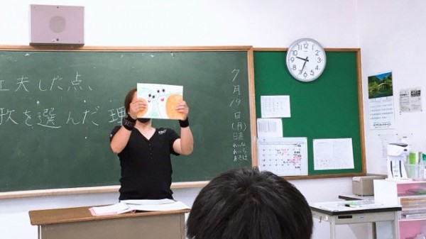 ユニークな作品を披露する学生。