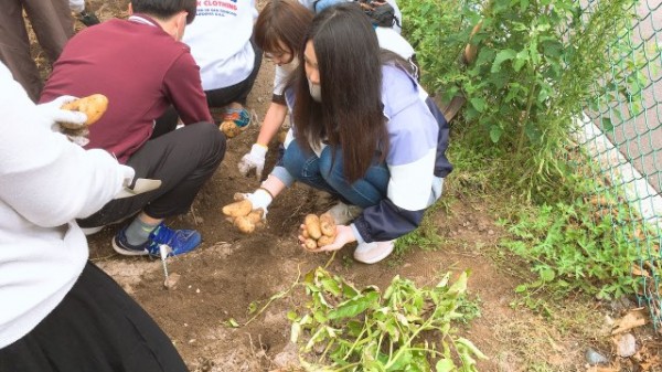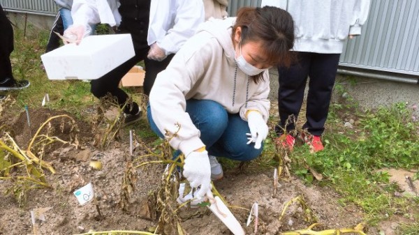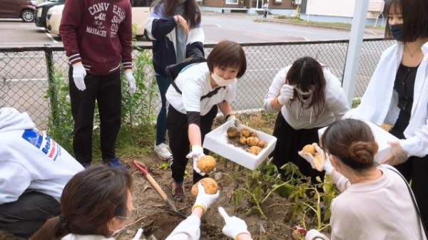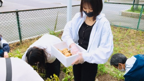 昨日、こども環境科2年生は『生活』の授業の一環として、学校の畑で栽培していたじゃがいもを収穫しました。