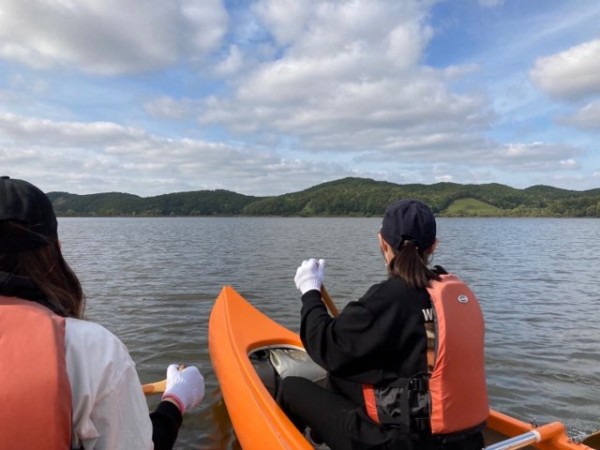 この日の授業では、釧路川を下るカヌー体験を行いました。ツアーガイドから、釧路湿原の成り立ち、生息する動植物等についての知識を学習しながら、塘路湖から細岡までの大自然を満喫した1時間半のカヌーの旅を終えました。
