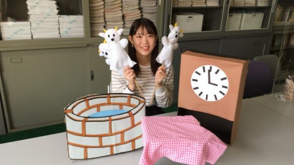 1年次に挑戦した人形劇は『七匹のこやぎ』でした。主にこやぎづくりを担当しました。