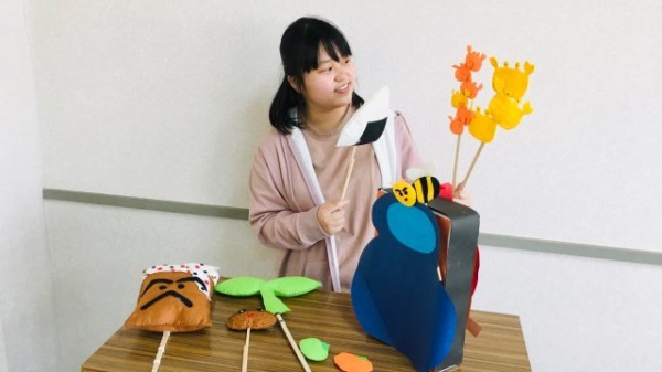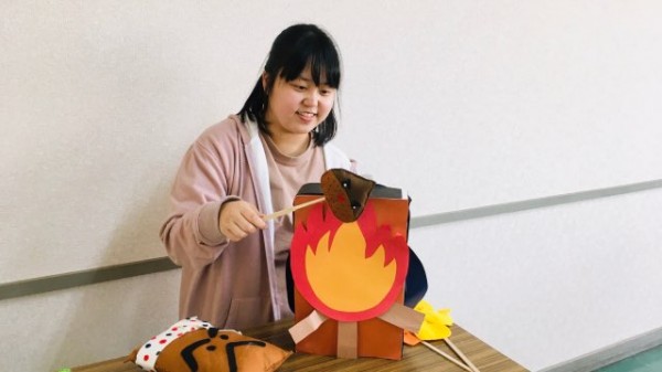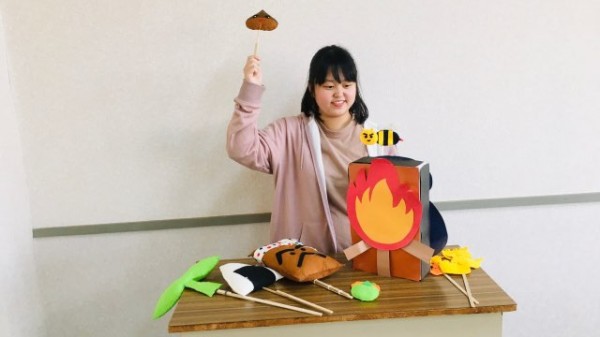 1年次に挑戦した人形劇。加藤さんのグループは『さるかに合戦』の物語を題材にして取り組みました。