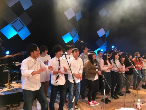 コーラス隊で頑張る学生たち。