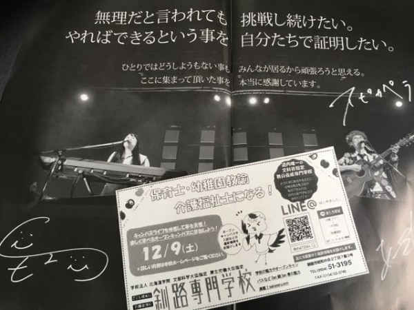 学校はライブパンフレット広告やエフエムくしろラジオ番組でもスポンサーとして応援しています。