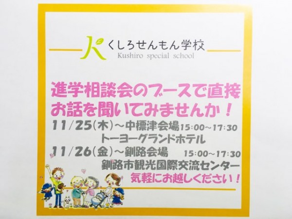 くしろせんもん学校は今週末の進学相談会に参加します。